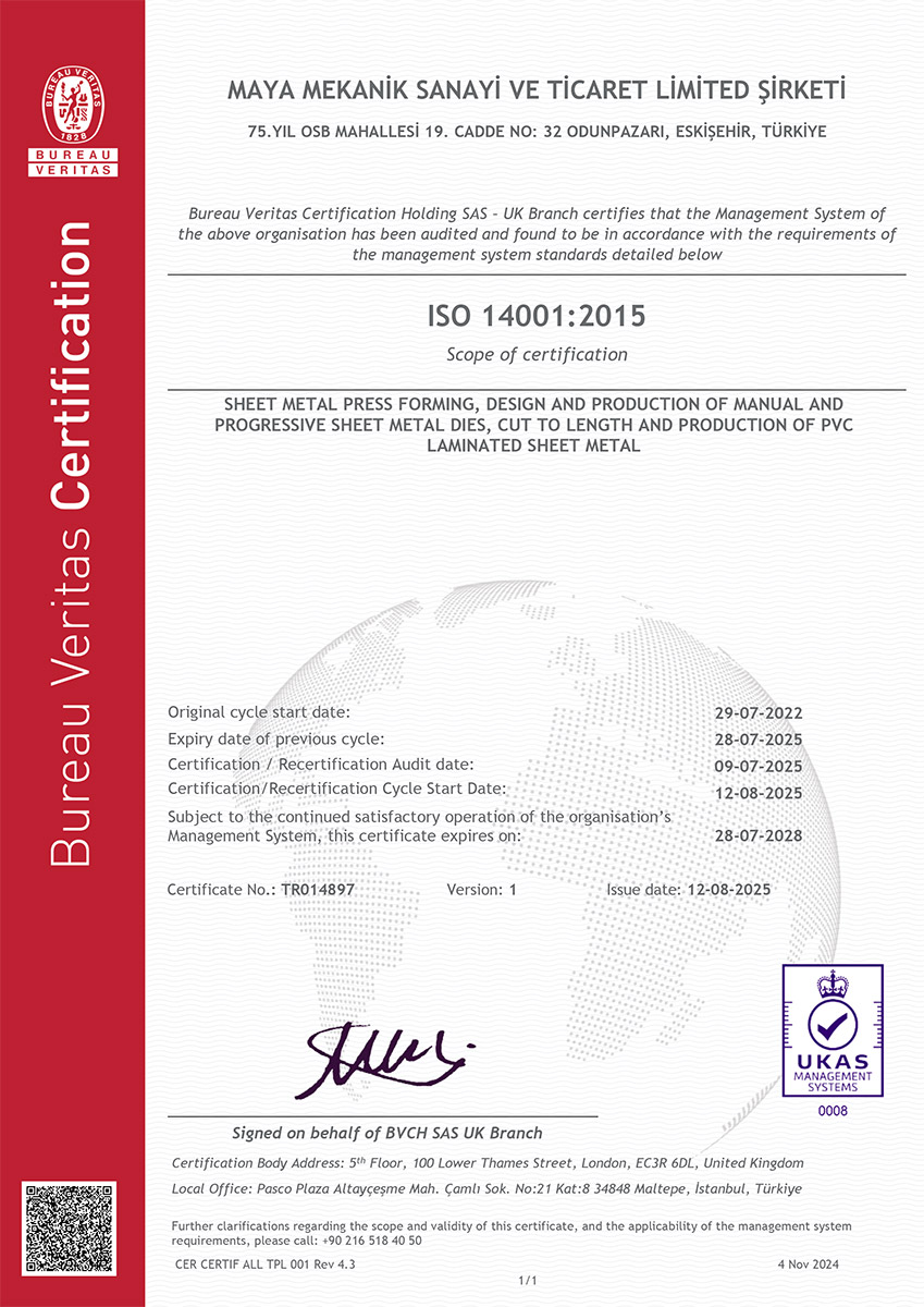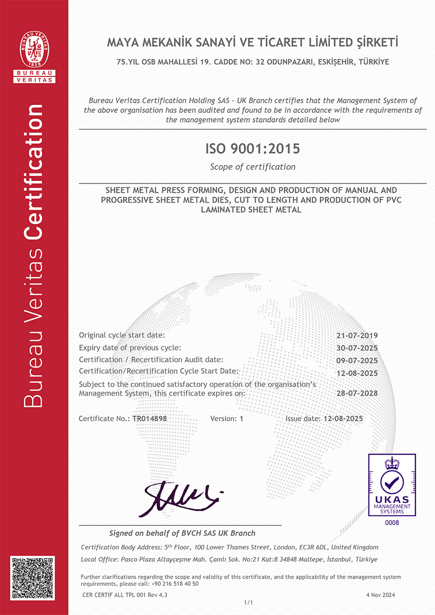 Maya Mekanik, was founded in 1995. Our company started its operation by production of manual & progressive molds and by stamping metal sheet parts. We added PVC Film Laminated Metal Sheet (Designplate) production to our main business portfolio in 2008. Maya Mekanik produces Metal Parts for White Goods Industry in increasing volumes thanks to its flexible production capability, competitive price principle and customer oriented insight.